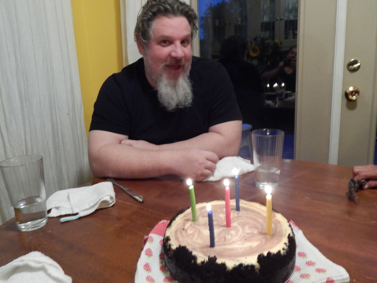 So someday I'll bake the real recipe from beginning to end, and I'll let you know how it differs from my franken-bake. However we are calling this cake a success! We used it as Mark's early birthday cake while my parents are in town for a visit, so happy birthday my love! Enjoy your Perfect Cheesecake!